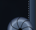 When you scroll, it'll glow and also spin according to your scroll direction. The rail will be from the bottom of the header to the bottom of the page.